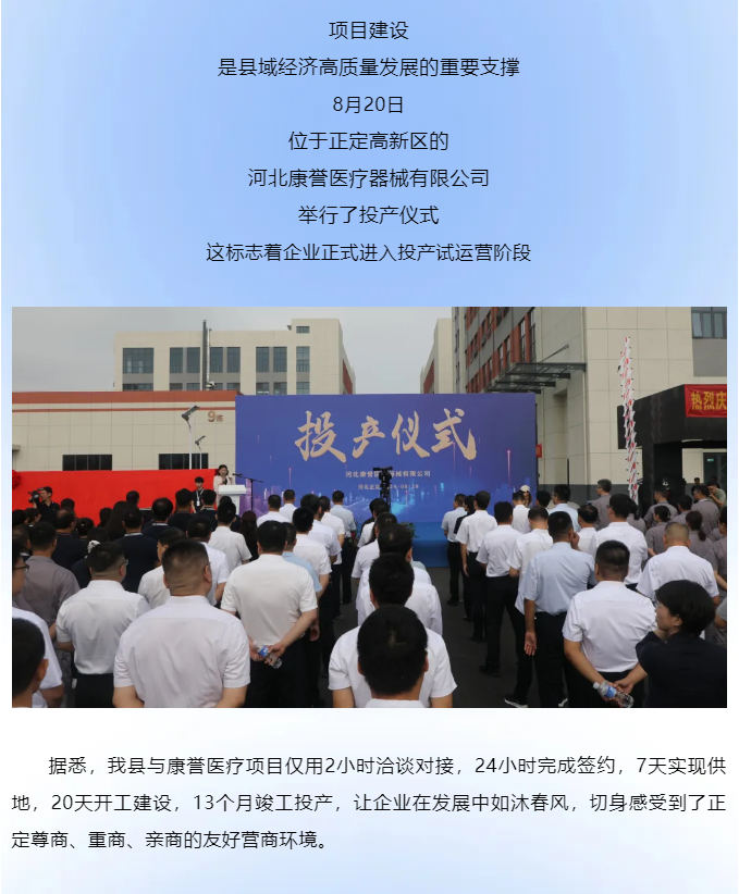 正定融媒發(fā)布:河北康譽(yù)醫(yī)療器械有限公司在正定正式投產(chǎn)!